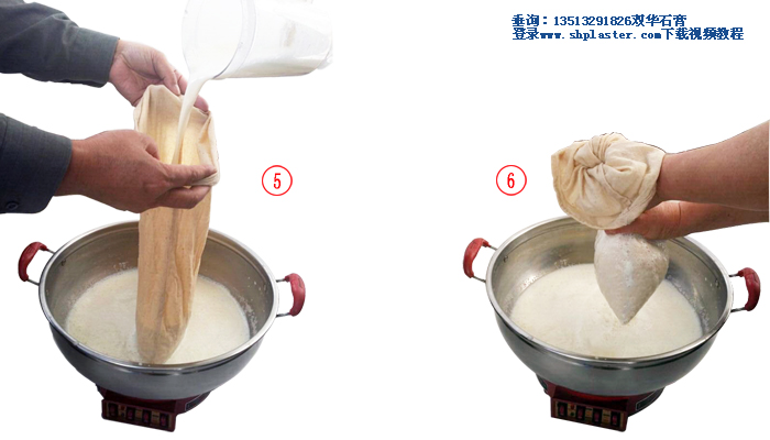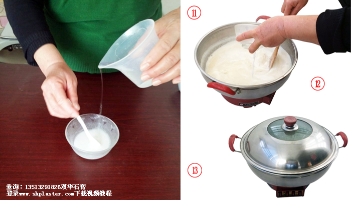 步驟11:把食品級(jí)點(diǎn)豆腐石膏粉和水迅速混合,快速攪拌成石膏漿。